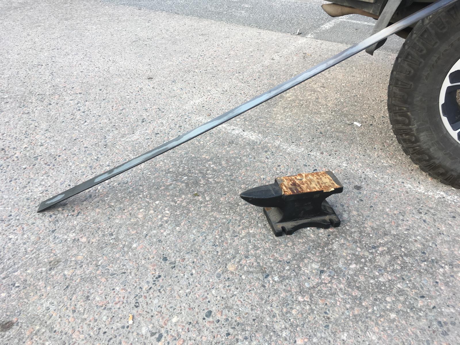 Rautaa 25 kg alasimen ja 60x5 mm latan muodossa.