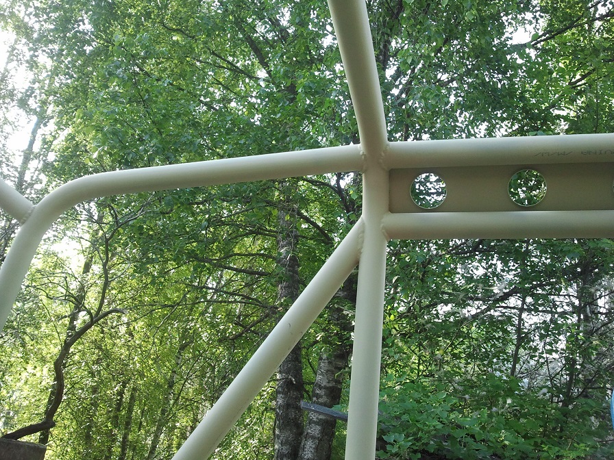 Myös omaan tein kaarien kiinnityksen koriin ja runkoon eikä ainakaan vielä ole ongelmaa tullut esille. Ainut on rättikaton pujottaminen paikoilleen kaarien alta (hidasta yksin).