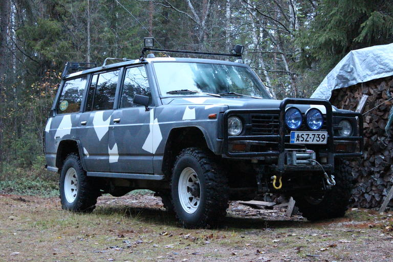 Vaikka akselilukot puuttuvat korkean maavaran ja renkaiden ansiosta hyvä pääsemään maastossa/lumessa. On palvellut luotettavasti nämä vuodet, ilman mitään isompia remontteja, lukuun ottamatta pakin hamppirattaita. Vaihdoimme varaosa laatikon ja jakiksen. Patrolin Hinta 2100 €.