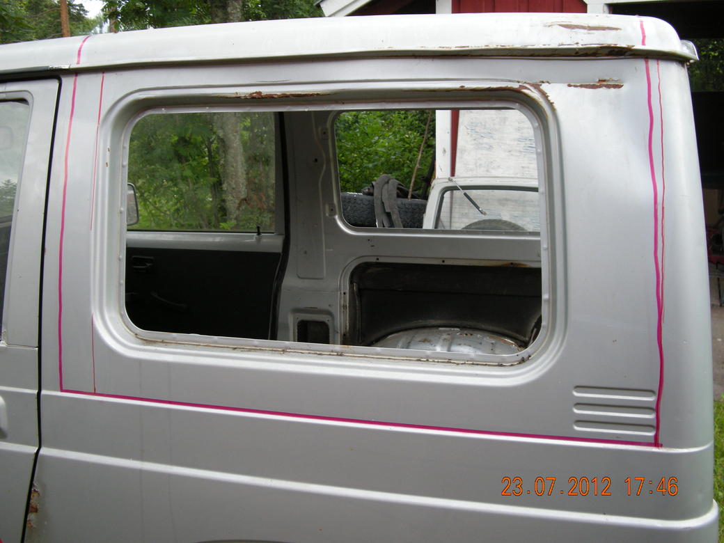 Meinaatko jättää takaseinän avoimeks? Ja tieliikenteeseenhän tuon saa ku hakee vaan poikkeisluvan ja sen jälkeen muutostaa korityypin vaihdos. Kaaren tietenkin vaatii mut sehän sulla on jo tulossa.