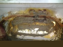 Seuraavaksi paikkaamaan runkoa, kumityynyjen reiät on hiukan kasvanut vuosiensaatossa, kuten tossa näkyy akselin yläpuolella.