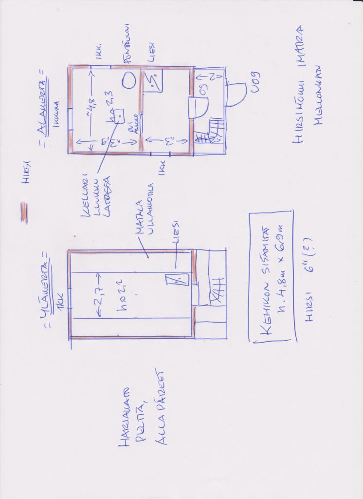 |   Hirsitalo purettavaksiHuutoMyydään hirsitalo purettavaksi. Rakennettu joskus 1920-luvulla, ei painu enää. Päällä lautaverhousta. 2-kerroksinen, mitat n. 6,9 X 4,8 m (sisä) Sisällä yksi pönttöuuni ja jonkun verran irtainta. Katossa vesivuotoja eli saattaa olla muutamasta kohtaa pehmeämpää. Imatralla Mellonkadulla. Tietä pitkin pääsee pihaan. Kaaviokuvasta ilmenee strategiset mitat. Valokuvat on vielä tietokoneen uumenissa, tulee piakkoin. Yv:llä yhteyttä. Huuto