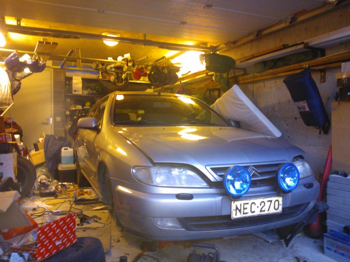 Lisävalot pidän itsella vaikka nuo ei kovin kummoiset oo. Eturengas on irti kun turbon pääsee näkemään ainoastaa sieltä. Autosta löytyy yksi pieni painauma kuskin puolelta takalokasuojasta. Kaverin vaimo peruutti volvonsa peilin siihen, joten painauma ei ole kovin syvä. Kuvaa en saanut tähän hätään räpsäistyä kun se on tuolla seinän puolella. Trailerillehan tuon saa kun laittaa akun kiinni (muistaakseni muuta ajoa estävää ei oo irti mutta tarkastan ja kiinnitän) Tässä vielä trafin tiedot autosta: Haku: NEC-270 Malli: Citroen XSARA 5D XSARA BREAK 2.0 TURBO HDI-N2RHYF/254 Valmistenumero: VF7N2RHYF36809377 Ajoneuvon tila: Poistettu liikenteestä Ajoneuvon käyttö: Yksityinen Ovien lukumäärä: Istumapaikkoja: 5 Väri: Harmaa Polttoaine: Dieselöljy Iskutilavuus (cm3): 1990 Teho (kW): 66 Käyttöönotto: 28.01.2000 Ensirekisteröinti: 28.01.2000 Katsastettu: 25.02.2013 Katsastuspäätös: Hyväksytty Seuraava katsastus: 28.09 - 28.01.2014 Vakuutus: Tapiola Vakuutus alkanut: 25.11.2009 Omistajat: Jokelainen ..........(Alkaen: 24.11.2009) Haltijat: Muut omistajat: Muut haltijat: Huom. Liikenteestä poisto (21.10.2013 alkaen) Lähde: TraFi EDIT: Kuvat siirretty eka postaukseen