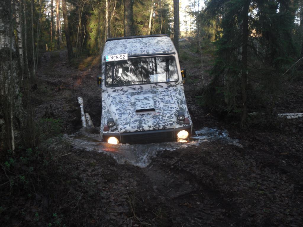Kulmaan ilmoittautui ajallaan 10 autoa ja 1 mönkkäri. Kelit ovat olleet syksyisen synkät ja vettä on satanut ja maasto on märkää. metsään ei ole tällä hetkellä kuin 1 reitti/silta ja toivomus/kehotus onkin ettei sen ympäristössä suditella vaan käytetään vinssiä/vetoapua jos kiinni jäädään.