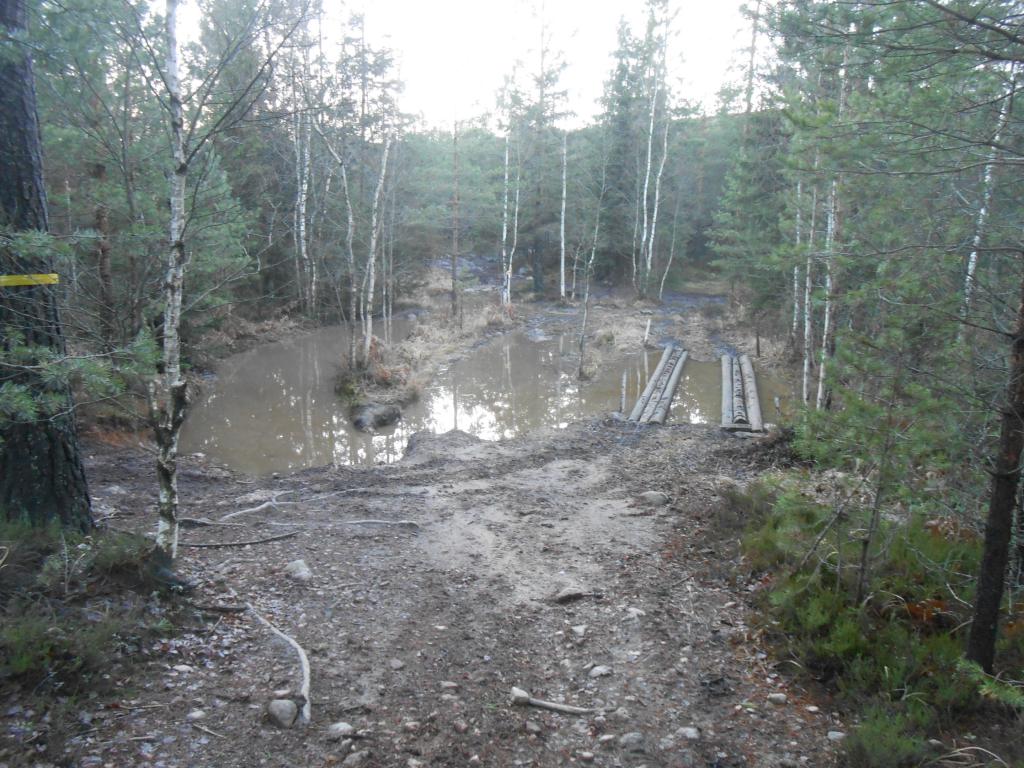 Eli tienpenkereen alapuolelle aukesi lenkki sillan 01 ja risteyksen 41 yhdistävä lenkki. Tienvieressä kantavaa, vaan harva päsee pehmeikön yli vinssaamatta. Tästä se lähtee. Metsä väistynyt reitin tieltä. Uusi reitti tulee vanhan pehmeikköön. Vinssi voi olla tarpeen etenemisessä. Suitsuki uudella reitillä illan hämärtyessä. Tarvii toi kuusi käydä viel kaatamassa tusta Suitsukin keulan edestä kun oli vähän ahdasta tuonkin kokoiselle? Sillan 01 edusta mennyt puhki. Tarvii saada kuoppaan täyttöä pikinmiten. Uusi siltakin on jo veden vallassa, kestää vielä n.10cm veden nousun ennen kuin peittyy. Risteyksien 10 ja 11 väliselle ristiriipunta kohdalle tuli tehtyä kierto. Nuotiolta päin tultaessa kierto oikealta. ja nuotiolle päin mentäessä sama vasemmalta. t. Ismo Ämmä