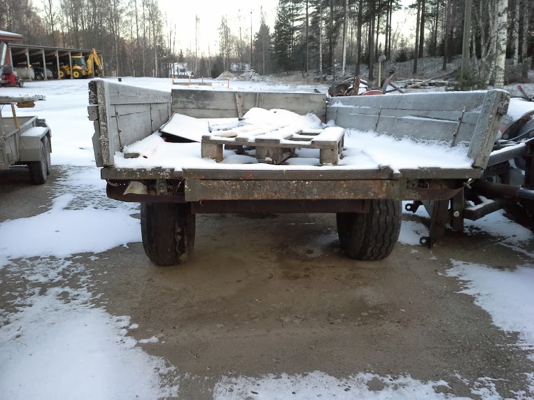 Akselin olen vaihtanut järeämpään jossa normaalit maatalouskärryn renkaat. Alkuperäiset pyörät oli pienemmät matalaprofiilikumit |