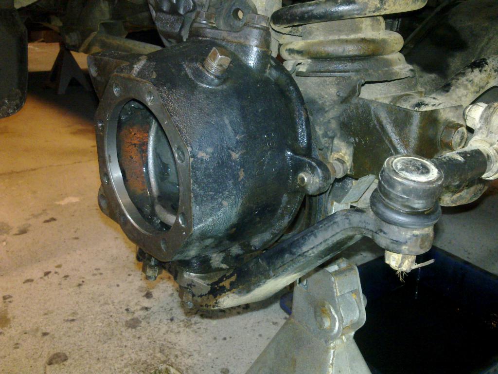 Uusi pinioni oli isommalla halkaisijalla booreista kuin vanha. Joten öljyvispilän reikä jäi pieneksi. Rattaiden kanssa tuli myös uusi pinionin laippa. Siinäkin oli joku tuplajako, eli jossain vuosimallissa myös kardaanin pulttijako muuttuu ?