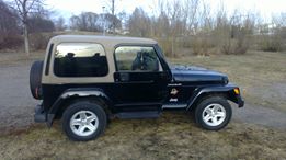 Taitaa TJ:ssä pyöriä vakiona 245/75 R16 (ehkä 265/75 R16?), tai 31 x 10.50, mutta ei juuri isompi. Muistaakseni Rubicon- mallien vakiorengas oli juuri tuo 245/75 R16. Ongelma vakioalustalla on sama kuin muissakin tuon etupään rakenteen omaavissa Jeepeissä (XJ/ MJ/TJ/ ZJ), eli isompi rengas ottaa kääntäessä kiinni alatukivarteen.
