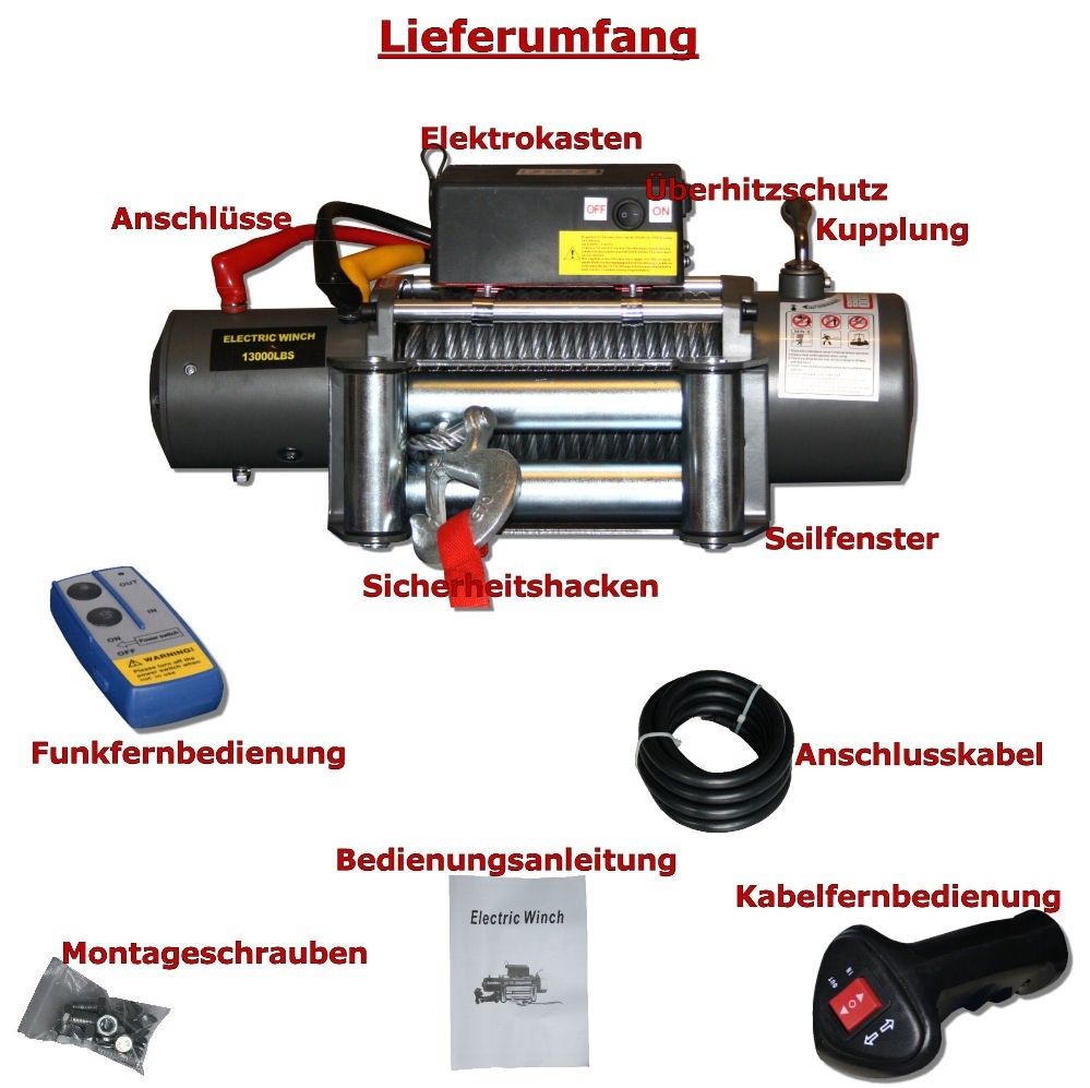 Electric winch 13000LB / 5900Kg 12V with radio remote control