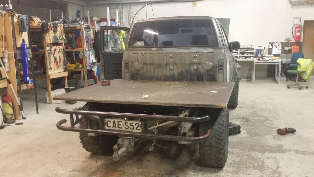king cab työkaluksiTuli hommattua tuollainen 1990 cab lisäpenkeillä, että lapset pääsee kyytiin ja työkaluksi jolla pääsee hyvin perille asiakkaille. Lava-autossa ei työkalut saily lavalla pitkään joten jokin koppi sinne pitää rakentaa. Kävin kysymässä konttorilta minkälaisen kopin saa rakentaa. Ohjeistus oli että 3kuutioo ja sisäkorkeus väh.130cm. no mätä lava irti ja myyntiin. Meni heti kaupaksi, ajattelin lavan pituutta 150cm ja leveys 180cm ja korkeus se 130cm niin menee siltä osin läpi