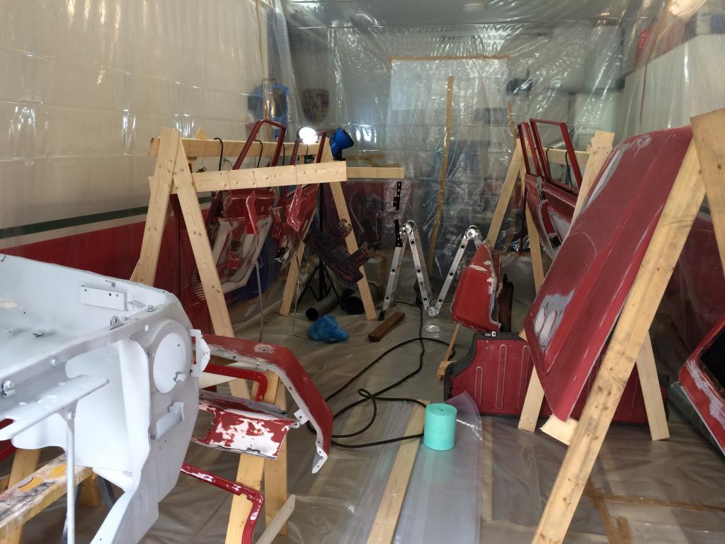 Ja homma hieman etenee. Ikkunat otin irti ja karmit paikkasin. Lokareita ja ovia hieman hiekkapuhallellut. Nyt jo uutta primeria pinnassakin ja alkaa näyttää paljon motivoivammalle.