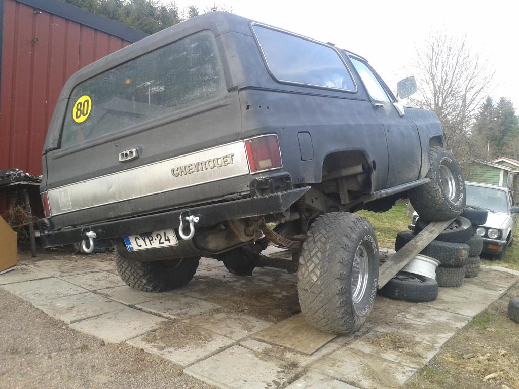 K5 6.2d 1979 projektTällänen, Blazer,vm.1979,6.2 diesel,3 vaihteinen ,manuaali taka-akseli, 12 bolt, ja etuakseli 10 bolt, tuli haettua 2010 loppukesästä. ensi vaan ajeltiin laitettiin 31" tilalle 35" at:teet leimasinkin 2 vuotena peräkkäin tehden vain pakolliset korjaukset