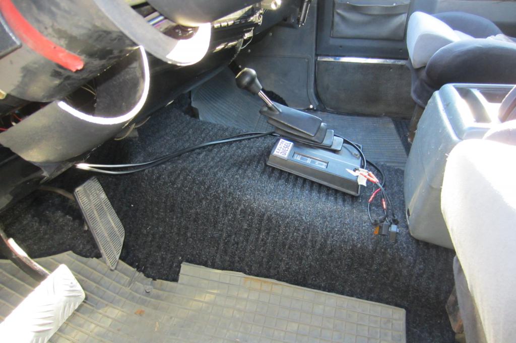 Pinniin D menevään johtoon en vielä kytkenyt sulaketta. Täytyy hommata joku 3A lattasulake eka, että uskaltaa testata. Sillä saa mahdollisesti ehkä turbiinilukon käyttöön vaihteilla 2 ja 3. Täytyy vielä pistää katkaisijat noille kojelautaan. Mitäs muuta.. Autonkorjuukiikku tuli kotiutettua viimein. Taitaa tosin olla tämä jenkki liian leveä tuolle, ainakin näillä renkailla. |