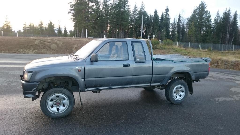 Hilux LN110 hydrauliikoillaMyydään Myynnissä Toyota Hilux LN110!- Vuosimalli 95, ajettu 380tkm - Autossa kiinnikkeet ja sähköt joystick-ohjatulle(ja siis se ohjain) auralle. - Hydrauliikkapumppu ja systeemit. Poistettu käytöstä (ei remmiä), en tiedä toimiiko, näyttää kaikin puolin ehjältä mutta enpä ole kokeillut. - Kippilava joka toistaiseksi lukittu pultilla kiinteäksi - Muutoin kaikin puolin räpeltämätön vehje. Pellit pääosin suorat ja ehjät, joitain kolhuja siellä täällä ja muutama kukka. Auto Suomen Länsi-Virginiassa; Sodankylässä. HP: 4400e Myydään