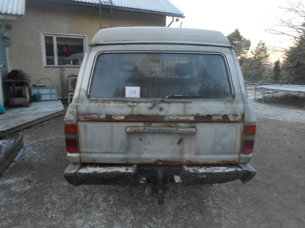 Toyota land Cruiser HJ60 High roofMyyty Nyt huutokupalla tekniikaltaan hyvä ja lukollisella taka- akselilla mekaaninen lukko, toimii kahvasta sisältä.Sisältä siisti, koppa huono, kuten kuvassa näkyy. Keulalla aura varustus laitteet, aura puuttuu. Vinssi toimii. Kilvet ja paperit löytyy. Auto on täysin ajokuntoinen. Huuto alkaa NYT. Loppuu su 3.1.2016 tasan klo 18:00 Lähtö hinta 800€ min.korotus 10€ Myyty