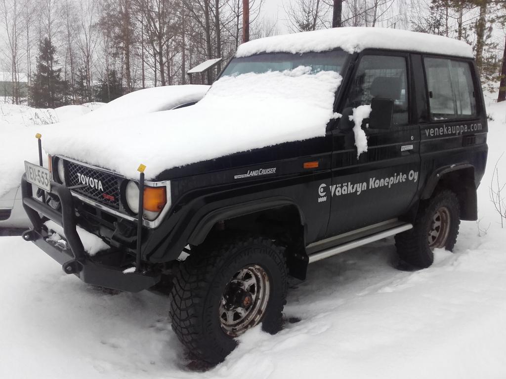 ![]() Tänään: - Varkaudessa Pelti- ja Ilmastoinnin (vissiin, no siinä Autolasin pihalla) sininen pätkä ulkopuolisilla turvakaarilla. En kyllä ehtinyt kuin sivusilmällä nähdä, kun oli täysi työ hillitä mun aamukahvia ja Lälliä samaan aikaan. Et niiku vähän nyt jäi merkki hakuseen, mutta offipeli selkeesti. ![]() - Pieksämäellä vihree BJ75. - Mikkelin ABC:lla valkoinen pätkä Patrolli, laitettu nätiks ku sika joulupöytään.