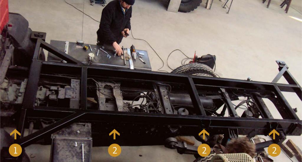 Maastokuorma-auton umpikopin kiinnitysMorjens kaikille, Rakennellaan maastomatkailuautoa. Pohjana miehistöhytillinen MB 1017 vm. -87. Nyt pitäisi saada joltain asiantuntijalta hieman tietoa miten kori kiinnitetään tuollaiseen autoon. Riittääkö lappu takapäässä ja jouset keskellä ja edessä, vai tarviiko peräti keinun, kuten jotkut näyttävät Saksassa rakentavan. Ja mistä jousia saisi hankittua? Riittääkö 10 cm:n jousto/puoli, kuten kuvassa (kopin yläreunan sivusiirtymä 29cm)? Onko jouset hyvä olla ylä- ja alapuolella? Oiskos siis kenelläkään ideoita/ajatuksia/ehkä jopa tietoa asiasta?