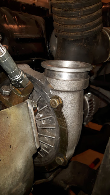 ![]() Turbon painepuolen liitosKuvassa Garrettin TO4 ahdin, jossa tuollainen V-panta liitos kompuran painepuolella. Ulkohalkaisija tuolla lähdöllä on n 70mm. Mistä tuohon saa v panta kiristimen ja vastakappaleen. Ja pitäsi olla vielä alumiinia vastakappale. Aliexpressissä kyllä löytyy mutta ovat ruostumattomia. Muutenkin tuntuu että harvemmin kompuran painepuolelta löytyy v panta liitoksia.