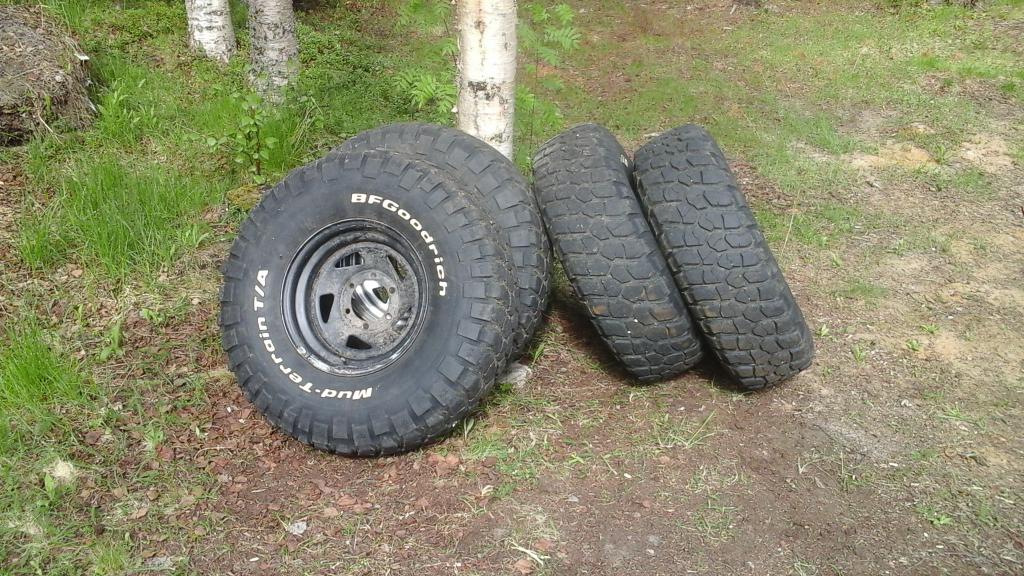 Täälä ivalossa olis 33x10.5x15 bfg mt km2 vanteilla