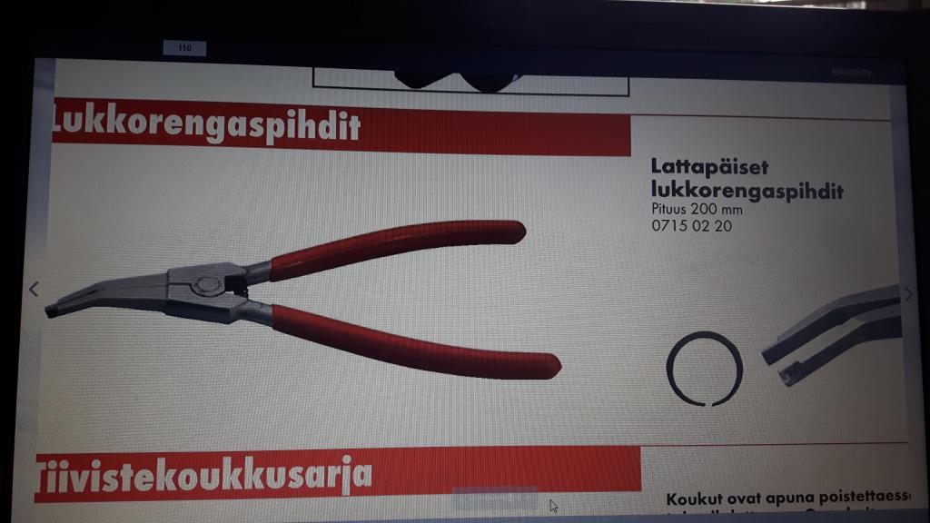 Tuo "reiätön-" akselilla oleva lukkorengas lähtee suhteellisen helposti irti kahdella meisselillä, kuten aiemmin kerrottiin. Jos taasen kyse jostain muista lukkorenkaista, niin hyvät työkalut on hintansa arvoiset (-yleensä) Minulla on neljän pihdin lukkorengaspihtien sarja suuruusluokkaa 15-30mm lukkorenkaille, ns. ammattilaatua. ja kun hinta on k.o setillä reilu? 100 euroa, niin tulee käytettyä "huolelleisesti". (Lukkorenkaiden avaaminen vaatii muutakin kuin puristamista.... ja muutamat paskaksi väännetyt halpikset; osaan niistä hitsattu "lisäosia-" mm. jousiteräksestä.... |