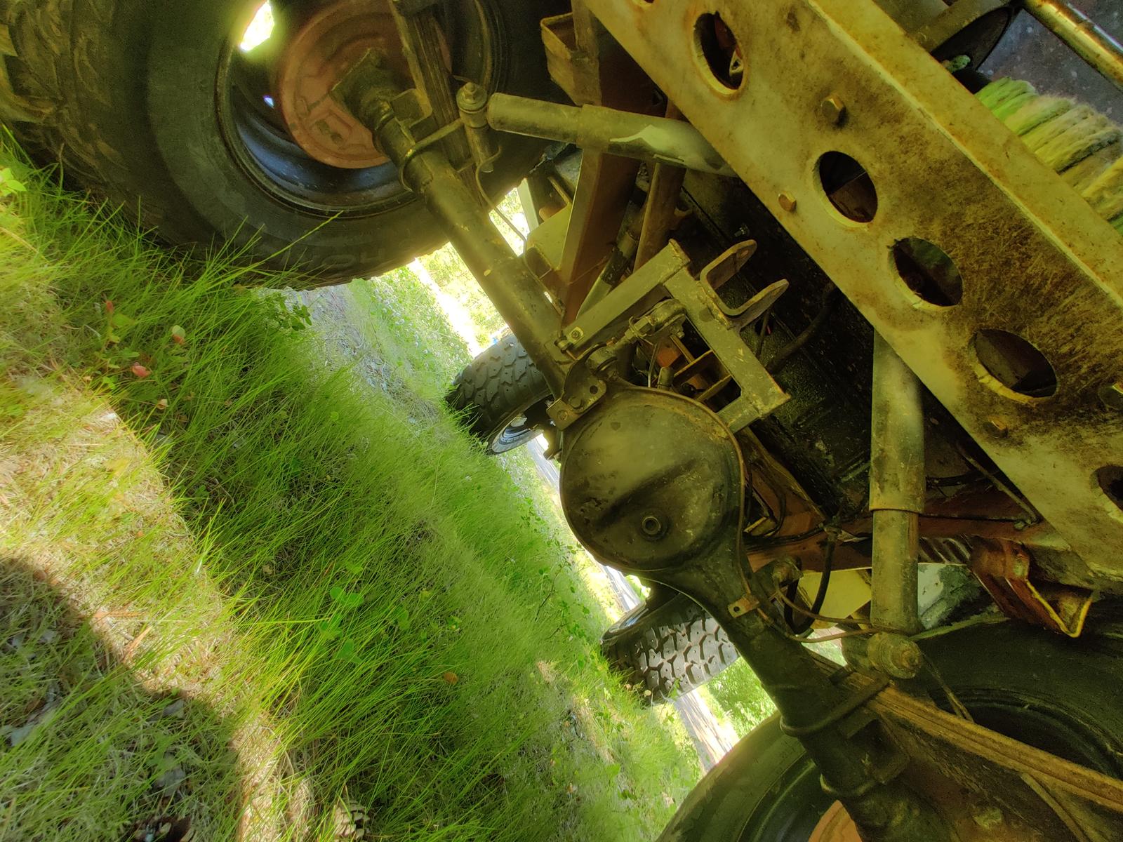 Reilusti korotettu, 33" renkailla. Kaksi laatikkoa peräkkäin, löytyy mönkimiseen riittävän hidas välitys, toisaalta myös tiellä ajoon, en tiedä mistä autosta toinen, ei oma tekele. Ei leimassa, ehjä, kovaääninen, kulkee maastossa hyvin. Ei äänieristeitä, karu sisusta. Tankki sisällä, valmis laite maastossa pyörimiseen. Korkeus riittää moneen puuhaan. Litranen manuaali, mukaan toinen lohko, jousia,akselia, kaasari, kardaaneja, jarrujen osia yms sekä toiset renkaat vanteineen, muistaakseni 31". Runko hiekkapuhallettu ja maalattu jossain vaiheessa, siisti, korissa osumia mutta hyvä maali, ei oikeastaan yhtään ruostetta.