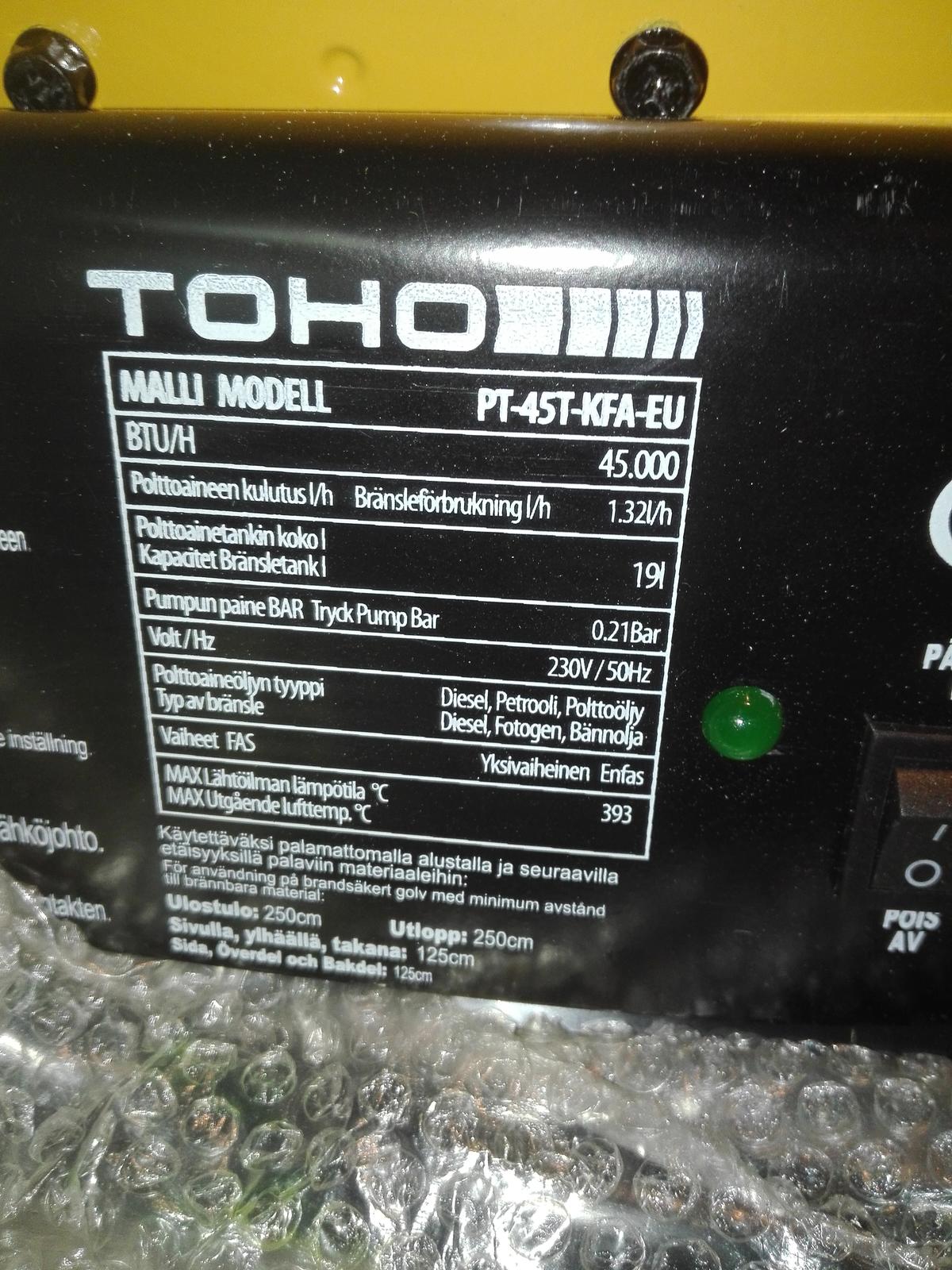 ![]() Diesel lämmitinMyyty Toho 10kw diesel lämmitin. Uusi paketissa oleva. 05034I3785 120eMyyty Viimeksi muokannut kellukka : 29.12.2020 18:39 |