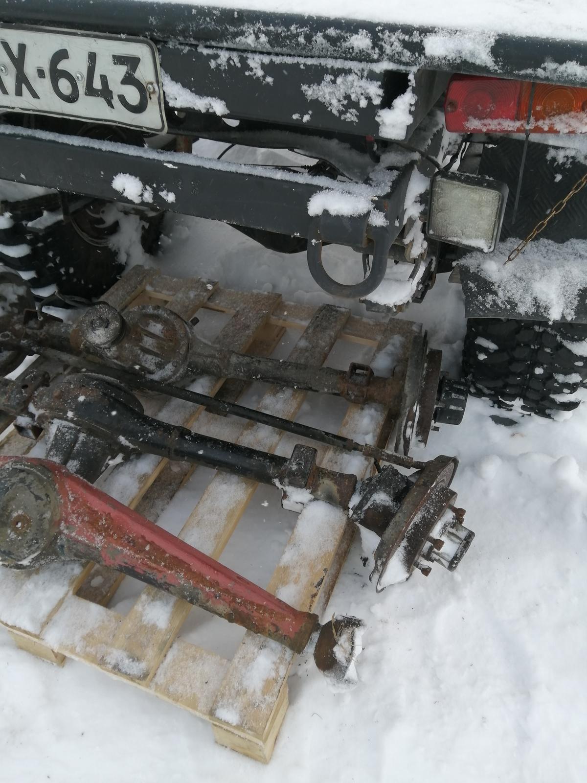 Suzuki SJj413 akselitMyyty *VARATTU*Suzuki SJ413 akselit, joissa normaali jousipedit ja lisäksi tehty Soa paikat. Eli näihin akseleihin voi laittaa jouset normaaliin paikkaan tai sitten korottaa soa paikkaan. Manuaaliset napalukot etuakselissa. Ja mukaan saa niin halutessaan valmiiksi leikatut palikat akselin vahvistamiseksi (Kuva 3). Ne on tehty 410 akseleihin, mutta vähän levittämällä käy myös nuihin akseleihin(413 akselien ulkohalkaisija muutaman millin isompi kuin 410:n). Lisäksi mukaan etuakselin kuoret, joka on jo vahvistettu päältä. Etuakseliin on myös uudet etujarrupalat paketissa. Akselit olleet kuulemma kevyessä käytössä. Itsellä ei akselit kerinnyt alle ja nyt auto myyty, joten ylimääräisenä. Tästä vaikka SJ410:een vahvemmat akselit SOA:aan tai normaali korkeuteen normi jousipedillä. Akselit ovat Sallassa, mutta kulkeutuu Rovaniemelle tai Kuusamoon. Hintapyyntö koko läjälle 300 euroa/tarjous. Yhteydenotot YV tai O4O-821829O (myös WhatsApp). *VARATTU* Myyty