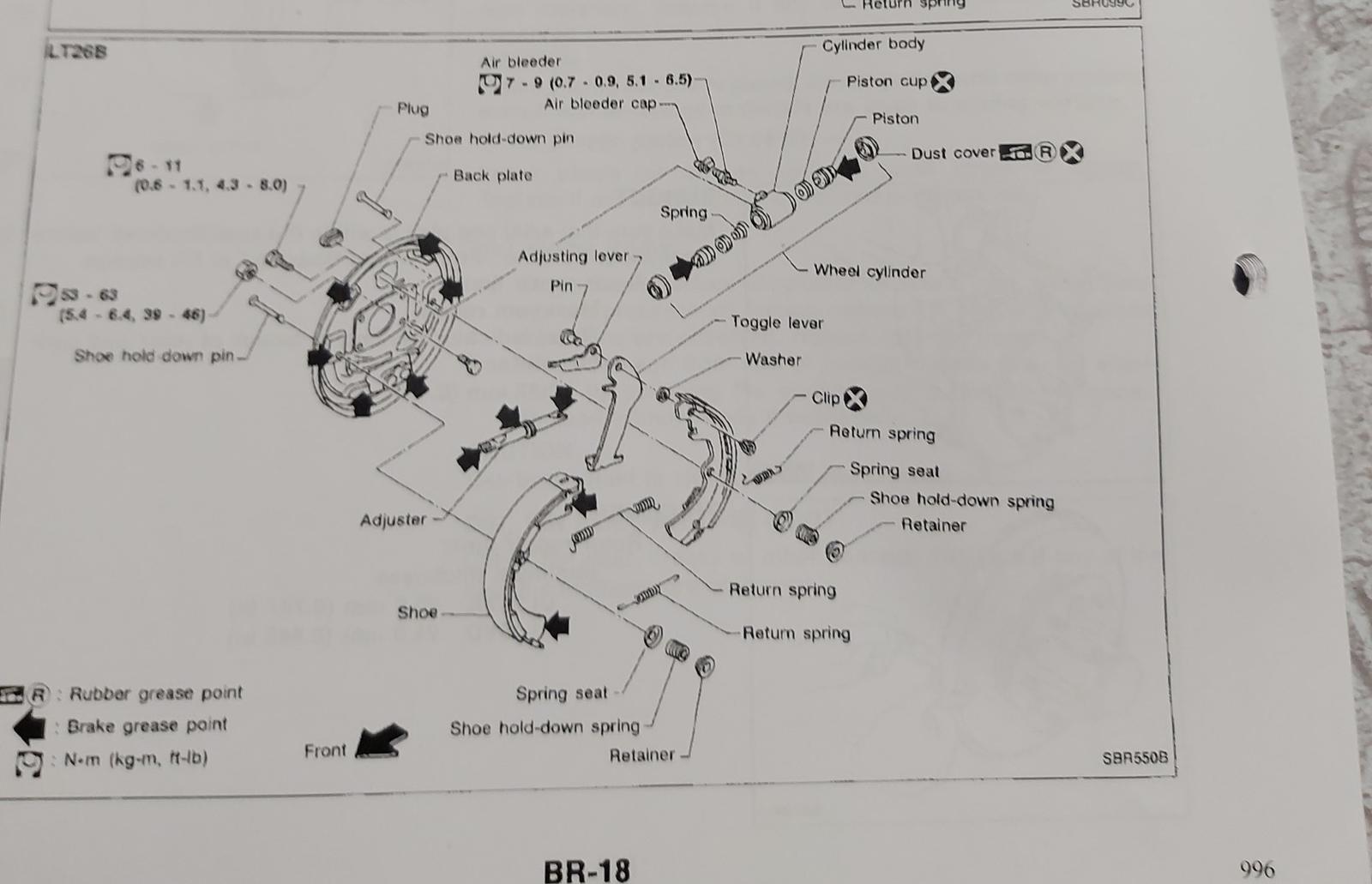 Mitä osia Terranon laahaaviin takarumpujarruihin ?Kiistatta takapyörät laahaavat vieläkin jalkajarrutuksen jälkeen vaikka käsijarrua ei käytä, minkä ongelman huomasi nyt talvisella tienpinnalla auton liukuessa vaarallisesti ja jäädessä sutimaan. Seuraava on Nissan Terranon 1:n teknisistä manuaaleista VG30E moottoria ja WD21 korimallia koskevaa poimimaani: (1) Teknisen manuaalin mukaan VGE30E moottorilla Nissan Terrano 1:ssä on takana (rear brake) LT26B jarrusysteemi (break model) (2) LT26B jarrusysteemi viittaa siihen, että takana on rumpujarrut (rear drum brake) systeemi (3) LT26B tarkemmasta ns räjäytyskaaviosta voisi ilmeisesti päätellä - sen lisäksi että olen pahassa pulassa - että sekä käsi-että jalkajarrut ovat samassa systeemissä ! LT26B kuvan lataus ei onnistunut, yritän eri koneella pienentäen lisää kun kerkee. Seuraavat osat on tilattu kun on luultu vian olevan pelkästään käsijarrusysteemissä: (4) käsijarruvaijerisysteemi eBay:ltä (5) jarrukengät Nissanilta (6) Kysymys: Mitä jarruosia olisi viisasta tilata ennenkuin jarrujärjestelmän aukasuttaa korjaamolla (työtunti kallista) kuitenkaan ylitilaamatta (osatkin hintavia) ja kun joitakin osia ilmeisesti voi "herkistellä", rasvata ja joitain on pakko vaihtaa: (a) tiivistesarja ? (b) jousia (return spring) ? (c) tulppia (plug) ? - jarrujen loppusäätö ilmeisesti reiän kautta ja jos huoltamolla jättävät reiän auki niin jarruihin pääsee vettä mikä pakkasella jäätyy (d) mäntä (piston) ? (e) sylinteri (cylinder) ? (f) muuta, mitä ? Huom: Aloittamani "Käsijarrun korjaus Nissan Terranossa" oli osittain väärä/puutteellinen/ koska vika ja ongelma ilmeisesti laajempi