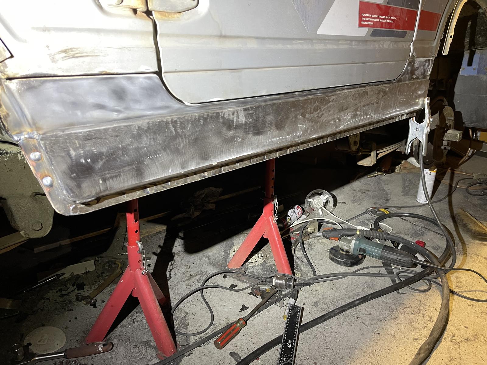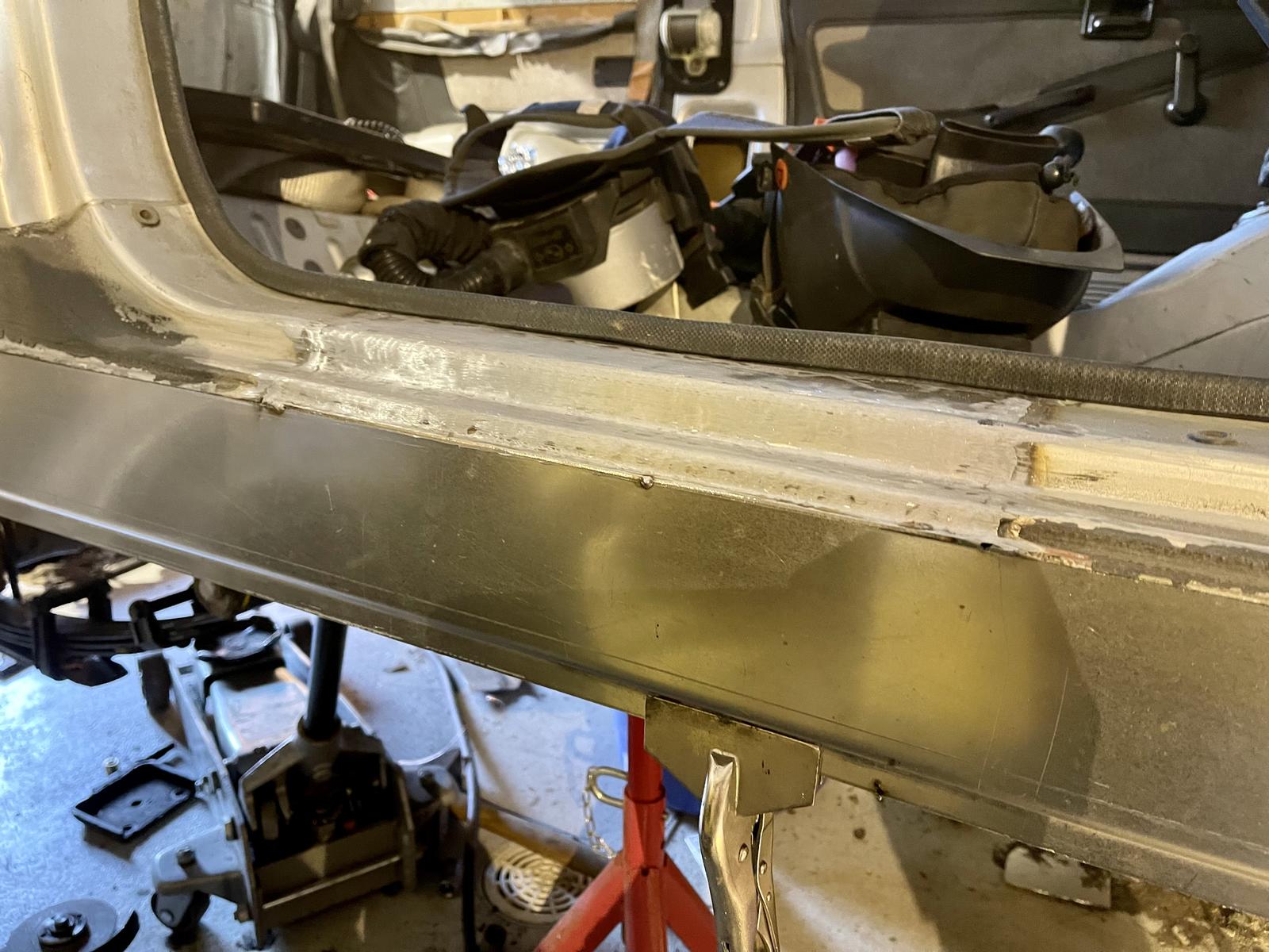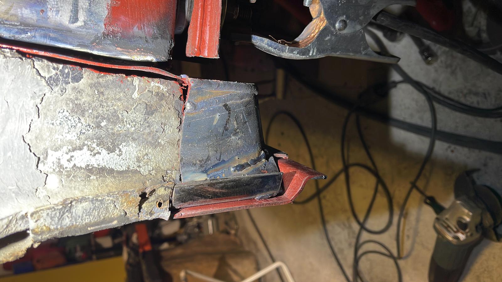 Nytten oon saanut jonkin verran aikaan, niin voipi lisäillä kuvia peltitöistä. Runkopalkit ovat onneksi lähes ruosteettomat tässä yksilössä, niin en nähnyt tarpeelliseksi ruveta koria irroittelemaan rungosta. .