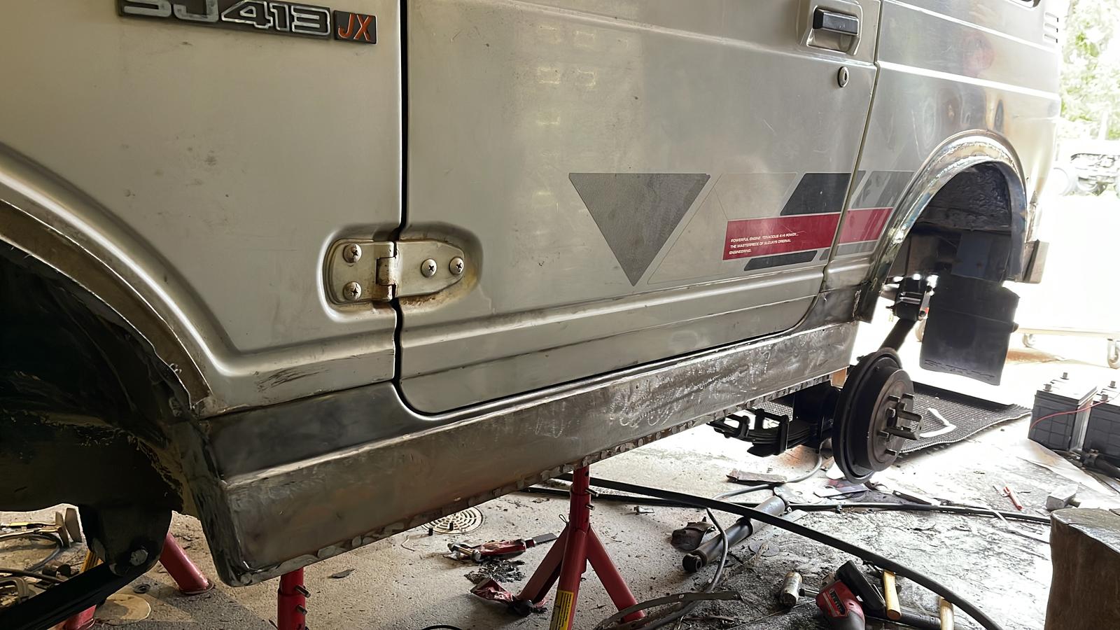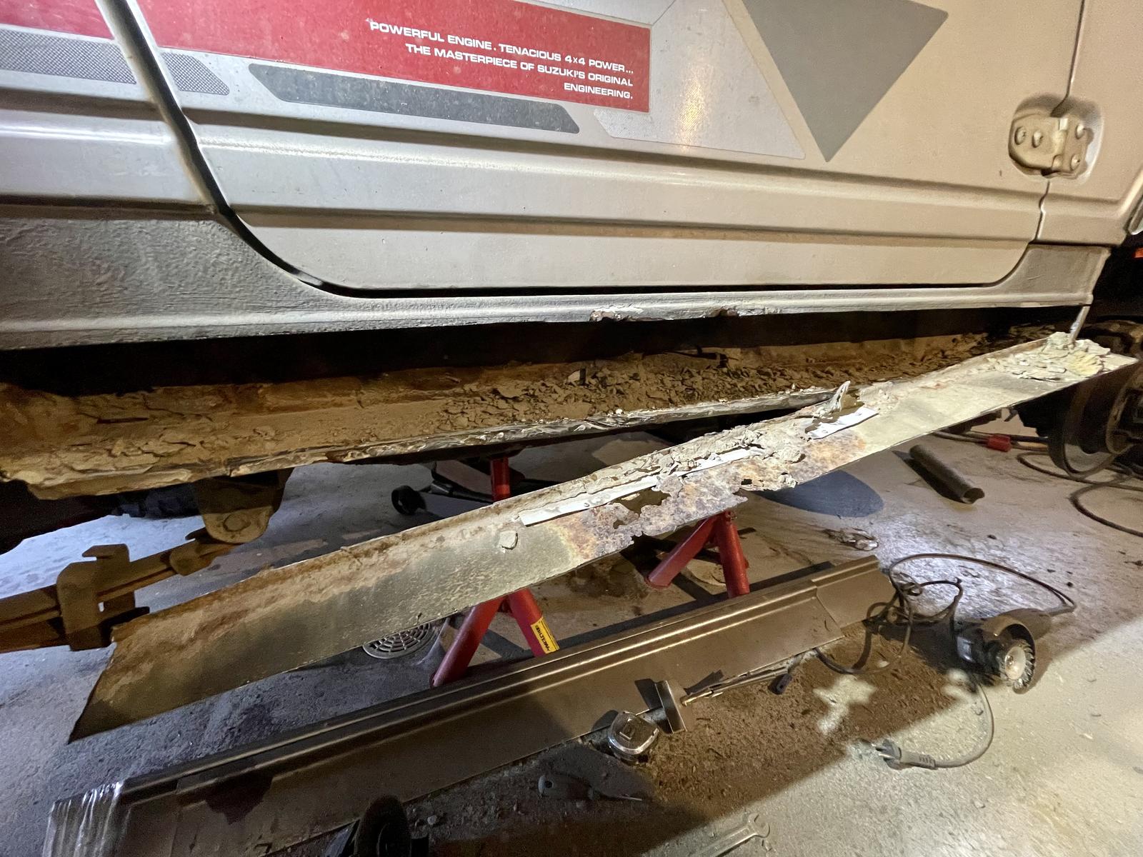 suzuki sj413 kunnostusTervehdys vaan kaikille! Ajattelin kirjoitella omasta suzuki projektistani vähän muistiinpanoja tänne. Suzuki tuli hankittua viimekesänä ihan metsästys käyttöön. Heti tuli laitettua valoja vähän keulille ja karkeampaa kumia alle. Samalle kesää tuli perushuollettua autoa ja kytkin remontti tehtyä. Nytten tälle talvea ajatteli ruveta paikkaileen helmaa tulevaa katsastusta varten. Aikani tutkittua autoa päätin, että vaihdan ulko ja sisähelmat vahvempaan tavaraan. Ajatuksena oli vaihtaa palkkihelmat, mutta päätin tehdä asiat vaikeimman kautta ja tehdä originaali tyyliset helmat 3mm tavarasta. En tiedä onko tässä tekemisessä mitään järkeä ja kuluttaa aikaa oem tyyliseen tekemiseen, mutta tehdään asiat nytten tälleen ja muistellaan aiemmin opittuja peltityö oppeja vaikka jos ei muuta