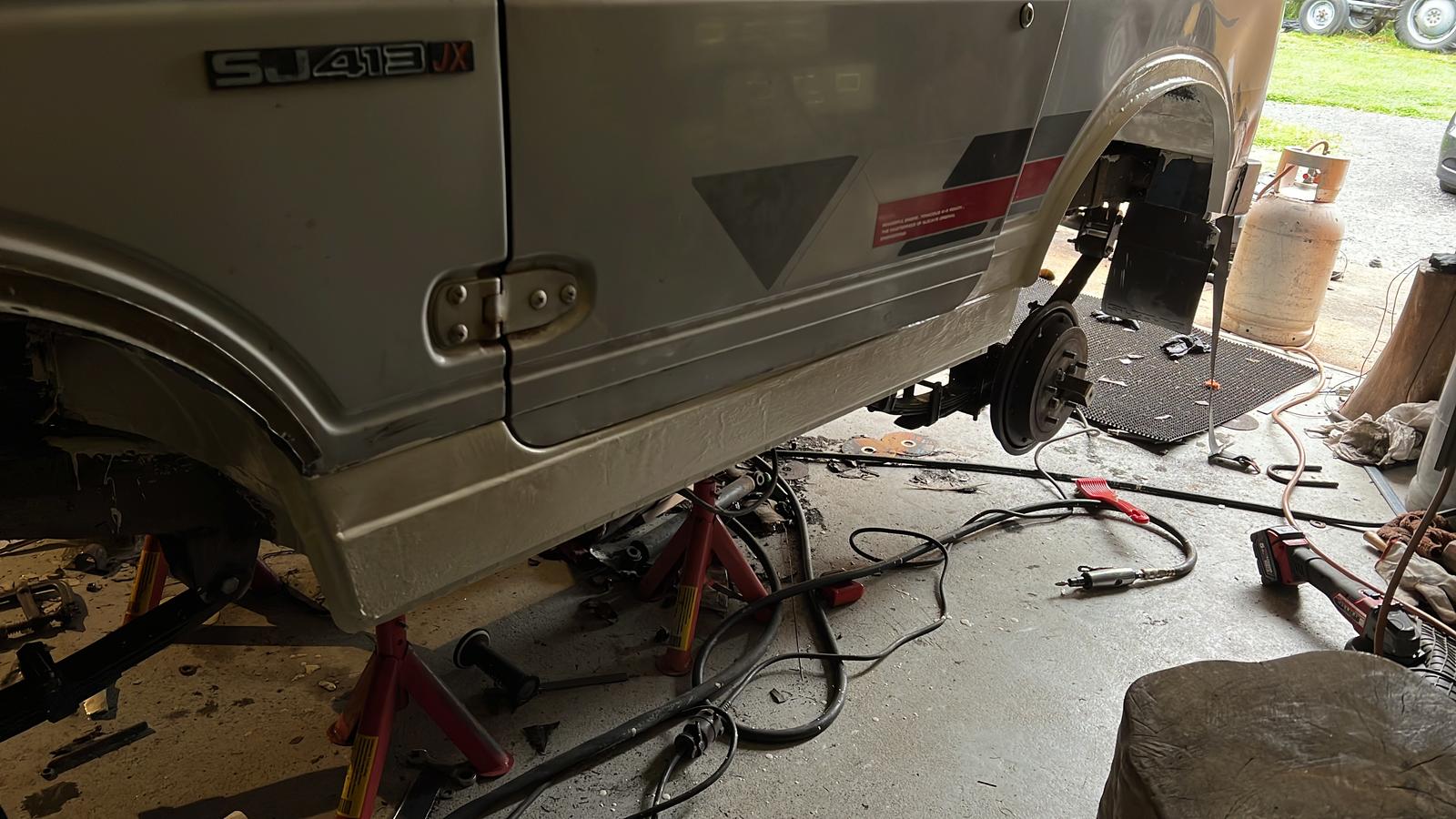 Alustaan tuli laitettua uutta osaa ja samalla tuli pikku takapakki projektin osalta. Uusien takapään u-pulttien kiristämisen jälkeen ilmestyi öljylammikko auton alle. Jossakin vaiheessa joku edellisistä omistajista oli paikannut kemiskillä mystisen lahovian akselin kummassakin päässä ja nytten pultteja kiristäessä lohkesi paikat irti. Tässä olen nytten miettiny, että koittaisiko putkittaa akselin uudelleen, jos ei ala löytymään uutta akselia mistään pian. Jos vähäänkään tuntuu, että on pakottava tarve päästä sj413 taka akselista eroon, niin mielelläni lunastaisin pois |