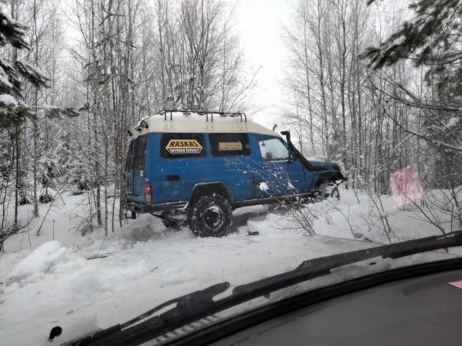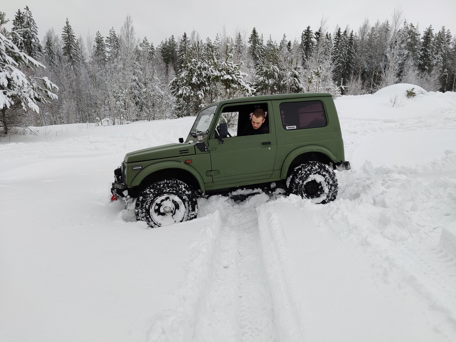 Lunta olikin Suzukille sopivasti. Samurailla ensin 30" renkailla reittiä auki, sitten Jimny 235/75r15 Nokialaisilla eteni ihan hyvin. Hauskaa oli! Kiitokset järjestäjille taas.