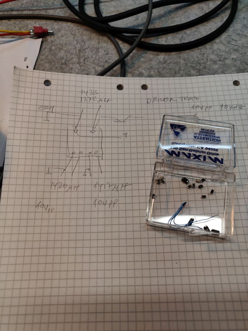 Menee jo vähän uteliaisuuden puolelle. Mittasin vielä driveri- ja päämuuntajan muuntosuhteet. Driveri on selväpiirteinen. Muuntosuhteet 1:1:1 eli ensiö ja molemmat toisiot samanlaisia. Induktanssit noin 1400uH / käämi. Alarajataajuus 8-10kHz luokkaa ja ylärajataajuus yli 2MHz.