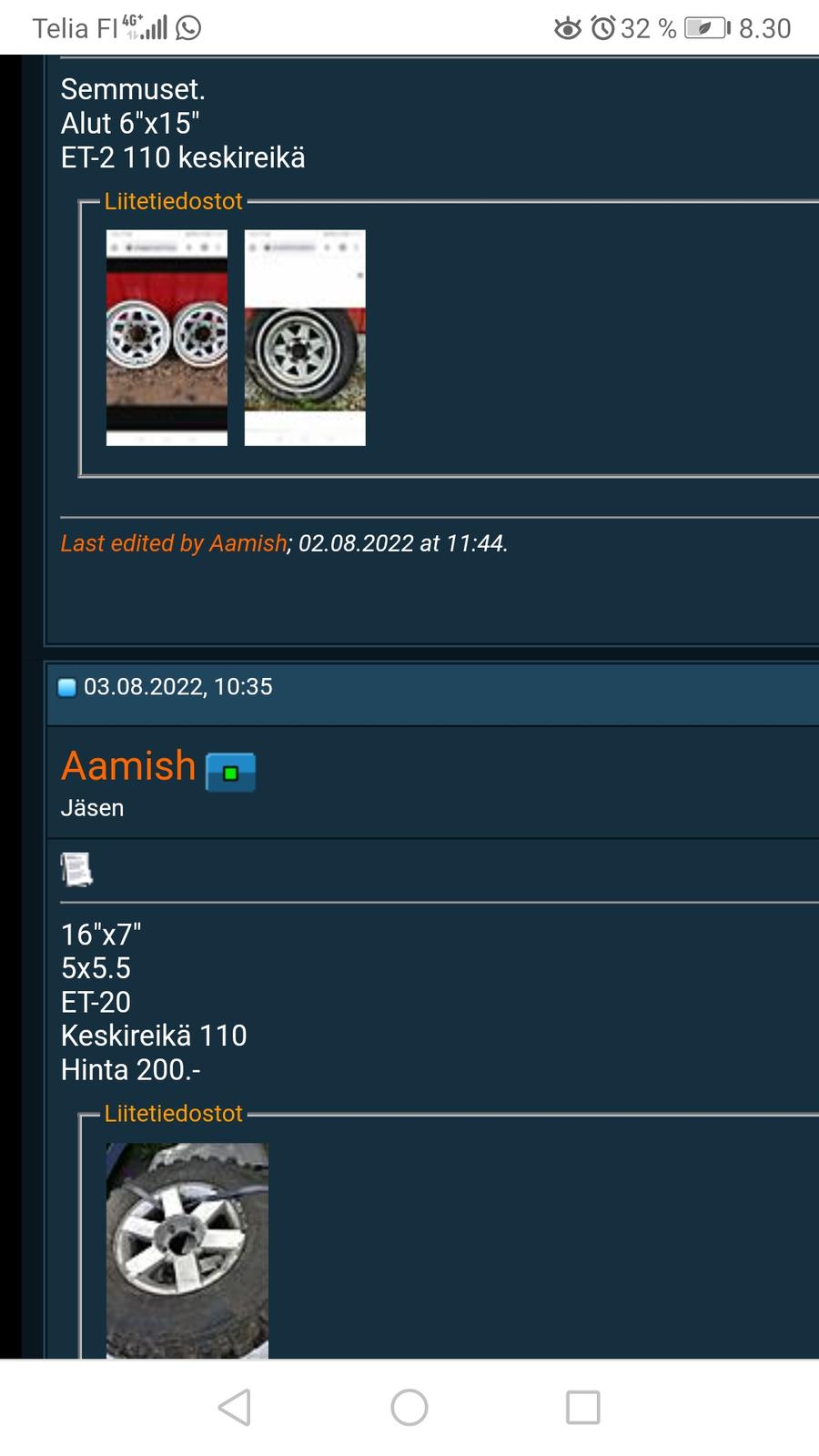 | Ostetaan Suzuki SJ410 sopivat renkaat | Pikkuvalmet | O/M/V Renkaat ja vanteet | 8 | 01.02.2010 19:18 |