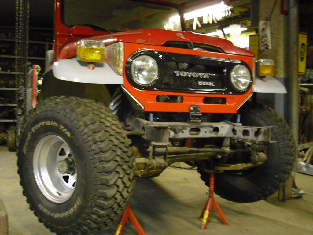 ko. BJ:tä on aikomus käyttää ensisijaisesti tieliikenteessä traileri/kärrinvatoautona ja kiskoa sillä ylös näitä paikallisia autosankareita joita säännöllisesti ojien pohjilta vastaan tulee, siksi nuo HJ:n norrapakat mm. koska alustan tulisi olla mahdollisimman jämäkkä. Tämän vuoksi jätän auton melko matalaksi että painopiste olisi myös alhaalla.Tuo punainenhan on tosiaan perinteisesti ollut ns. romunrepimisautona huoltohommissa. toivottavasti olisi nyt jämy alusta kun onhan nuo kaikki kiinnikkeetkin HJ:ssa huomattavasti järeämmät. Toisekseen ei olisi rahallisiakaan resursseja kalliisiin kierrejousihärpäköihin. Liekö kukaan aiemmin levittänyt BJ:tä HJ:n pakoille, minkähänlainen ajettava tuosta tosiaan on tulossa? Taka-akseli kiinnikkeineen valmis, ohjaus toimii jo ratista, etuiskarikiinnikkeet valmiit, kyllä tämä voiton puolella pitäisi jo olla kunhan hiekkapuhalletaan, sinkitään ja maalataan eli kerran vielä olisi osiksi purettava. Vahvistehitsaukset runkoon, iskariputki taakse ja ohjausiskarin paikka enää tekemättä ja koitan saada parempia kuvia pintakäsittelyvaiheesta, kohta ajetaan! t: UCB- nyymi. |