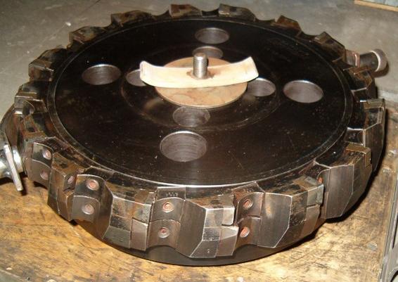 Löytyi vielä toinen vähän pienempikin jyrsinterä, 250 millinen, Sandvik tämäkin. Tässä kiinni kiinnitys kartio, vissiin sitten toi ISO 50, niinkuin Rytari epäilee. Neliöpaloilla molemmat, joka toinen puuttuu, vissiin tarkoituksella(molemmista) kaikki palojen kiinnitysosat on.