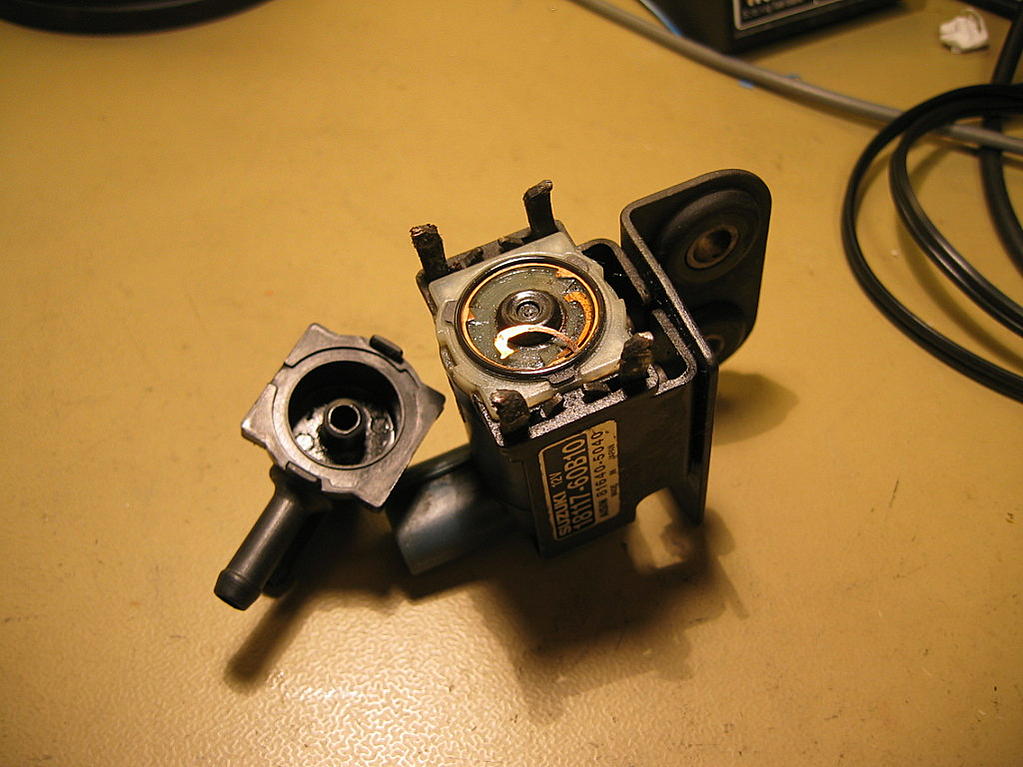 Suzuki TBI:n ISC venttiiliRassailen tässä Juuson Suzukin TBI konversiota varten Swiftin TBI osia asennuskuntoon. ISC/IAC eli tyhjäkäynti-ilma venttiili ei osoittanut mitään toiminnan merkkejä. Oli vain auki ohjauksesta riippumatta. Ei auttanut muuta kuin purkaa venttiili. Solenoidin männän keskittävä jousihässäkkä oli näköjään miljoonan kilometrin ajon jälkeen pettänyt. Yksi osa hävinnytkin. Mielenkiintoisempi juttu on venttiilin sulkeva jousi. Sellaiselle oli selvästi paikka, mutta jousta ei missään. Mallailin sopivaa jousta millä venttiilin sai jotenkin toimimaan. Pari viimeistä kuvaa tästä. Onko kukaa avannut ehjää venttiiliä ja onko mahdollisesti kuvia. Tietysti jos jollain on nurkissa ehjiä venttiilejä, niin ne kiinnostavat. t. Juha