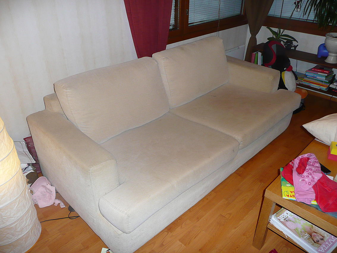 sohvaMyyty Elikäs annetaan 3 istuttava sohva. Päälliset on irroitettavat joten voi pestä koneessa. Runko on likainen niinkuin päällinenkin. Koirakin on kulmia pikkaisen maistanut. Tästä jollekin hyvä tallisohva tai pesemällä kotiin. Noudettavissa pirkkalasta tänä viikonloppuna, sunnuntaina menee roskiin jos ei kelpaa.Mikko/0407331065 Annettu Myyty