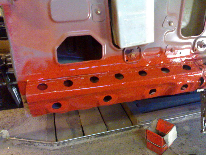 Kyllä nuo kotelot ja runkopalkit suojataan niin sisältä kuin päältäkin. Eli homma on sen verran edistynyt että kylkipala on kiinni ja sisähelma oikaistu. Tuli siinä samalla tehtyä uutta helmapeltiäkin, kun vanha oli niin kurtussa. Tuli mieleen että olisko tarvinnut tehdä helmat hieman orkkista tukevammaksi, ei harmittais niin kovin jos jää johonkin kantoon kiinni