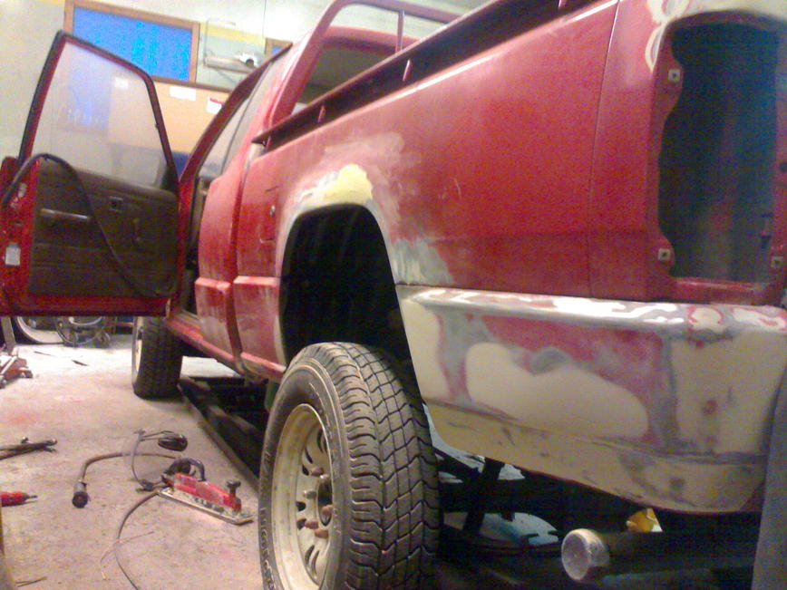 Seuraavaksi alkaa kolarivaurioiden korjaus. Vanhan kylkipalan sain porailtua pois ja huomenna olis tarkoitus ruveta iskemään uutta peltiä paikalle.