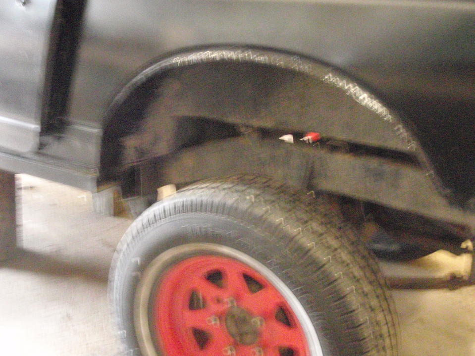 Alkaa näyttää ryhdikkäältä soattuna ja avaremmilla kaarilla. Renkaat alla 225.70.15 vakiovanteilla. Takakaarista siistitty vain terävät kantit pois