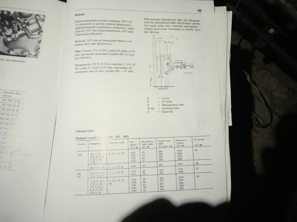 Raideleveys W460 1425 mm ja W463 1475 mm mutta tulikohan tämä pelkistä vanteista ... ? Joku superheavyduty W461 etuakseli oli ainakin leveämpi, liekö kantavuuskin suurempi ... Edit: https://clubgwagen.com/forum/viewtopic.php?t=3416 Jso tarvetta W463 akseleille, niin multa löytyy kohta irrallaan, mutta ilman ABS iä nämä ovat