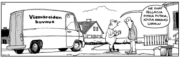 |   Asiaa paskasta?Tai siis paskan kuljettimesta eli viemäreistä. Tässä nyt on saanu käydä kuukauden sisällä pariin otteeseen sulattelemassa erään "asiakkaan" kakkatorvea auki...ja pikkasen pistää ihmetyttämään kuinkas tollanen torvi ylipäätänsä jäätyy... Tässä tapauksessa asunto ei ole kytkettynä kunnallis tekniikkaan, vaan omaan kakka kaivoon...joka siis on umpi säiliö. Eikös tollanen kakkaputki pitäisi olla periaatteessa kokoajan tyhjä, kuinka se sitten voi jäätyä? Vai onko sellainen tilanne että asukas käyttää vettä nuukanlaisesti ja mujut(varsinkin paperi) teköö pienoisen tukoksen putkeen joka jäätyy? Edellinen asukas on asentanut jonkun saattolämmitys kaapelin, kun on kuulemma 30-vuoden aikana jäätynyt kerran. Tämä kaapelihan tietty kerää omat mujunsa vielä. Joka tapauksessa putki kulkee aikas pinnassa, todennäköisesti siis routa on painunut jo putken ohi...kaatoa ei ole varmaankaan paljua, kenties putki on ajan saatossa vähän painunut myös... Mikä olisi oikia ensiapu? Suosittelin että jos nyt alatte vaikka vetämään sitä vessaa "oikeesti"...