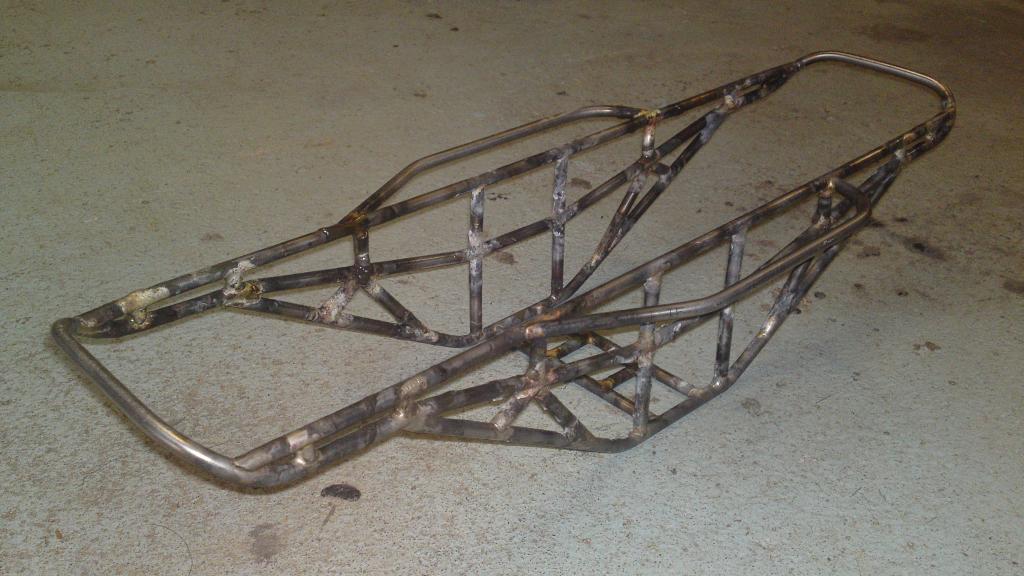 ![]() Tuo kone on jostain kultaiselta 80-luvulta peräisin, eikä todellakaan ole tulossa tuohon vehkeeseen, mutta sattui olemaan ainoa moottori mikä irrallaan nurkassa lojui, joten se nyt toimittaa mallimoottorin virkaa tässä vaiheessa. Paketin sisältöä. Jos vaikka pian saisi ne jousetkin, kun niitä tässä jo vähän odottelen... Pohjalevy, moottori ja jakis paikoillaan, ja etujousien loopit käänneltynä, ja muutama muukin putki lisättynä. Pakoputki ei tule lopullisessa setupissa lähtemään tuohon suuntaan, koska jousi sattuu olemaan juuri kohdalla, joten putki tulee kulkemaan korin sisäpuolella moottorin toisella puolen. Jarrujen takia täytyi tehdä pieni väistö tuohon yhteen putkeen. Jakis olikin vähän turhan tiukka sovite, joten joutui vähän siirtämään toista tukiputkea sen alapuolelta. Ja edelleenkin mahtuu vielä kori päälle, joten tuosta on hyvä huomenna taas jatkaa! ![]()