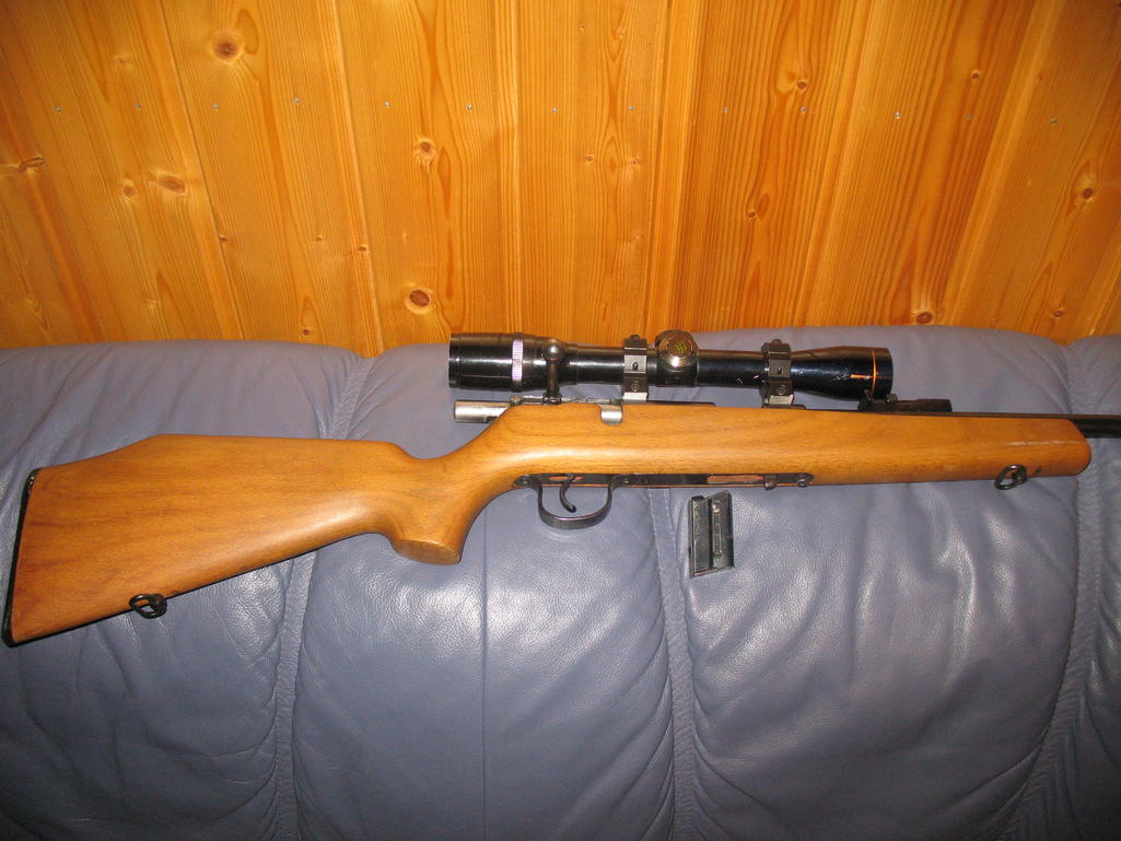 Täysin tarpeettomana itselle ja tilaa vievänä poistoon asekaapistani. Malli on Mauser 107 valmistettu West-Germany joskus eli ase on jo iäkäs mutta toimintakuntoinen ja asiallisen siisti! Päällä nököttää Nikko&Stirling 4x32WA kiikari ja edessä äänenvaimennin, ja mukaan tulee vielä 300kpl patruunoita. Ostin aikoinaan tarkkuusammuntaa ja kesä harjoitteluun kun halvempi tuolla on ampua kuin hirvikiväärillä... mut eipä tuolla ole tullu paljoa rätkittyä. ehkä joku 300 laukausta. eli tauluun ja muutama räkättirastas ja harakoita silloin tällöin.