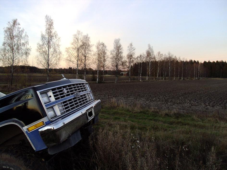 0-budjetin Blazer-kyhäilyäPari kuukautta sitten vaihdossa ilmestyi pihaan -83 Blazer 6,2 dieselillä, 35" renkailla ja 70mm jousituskorotuksella. Korotus ja renkaat otteessa. Pienet paikat etujalkatilan kulmiin laitoin heti, tuulilasin tiiviste kun kusee vettä jalkatilaan. Tiivisteen alta tuulilasin kehys ihan pehmeetä, laitoin sikakittiä tiivisteeks, hitsailen (ehkä) ens kesänä. Takatilan lattian oli aiemmat omistajat tehny jo uusiks, 2mm pellistä. Korotuksen yhteydessä jakolaatikkoa on "laskettu" pari tuumaa alemmaks, ettei kardaanikulmat mene liian jyrkiksi. Ihan hyvä idea, mutta kovin alhaalla se on. Kuvassa näkyy liiankin hyvin. Pakoputket pitäis lyhentää, otti maahan kiinni. Samalla vois koittaa värkätä puskurit/siipikarjaraudan jostain profiilista, pyöreestä tai neliöstä. Ja laittaa naftatankin ympärille jonkinsortin suojakehikko. Työvalot tarttis taakse viritellä, noilla pakkivaloilla ei juurikaan näe mitään. Ja kaikkee muuta, mitä toisilla näkee, niin alkaa heti tekeen mieli... Laitan taas jotain kuvia, jos jotain saan aikaiseksi, aika hitaasti varmaan etenee, kun taloakin tarttis rempata. edit: Rottelo siis työmatka-ajossa