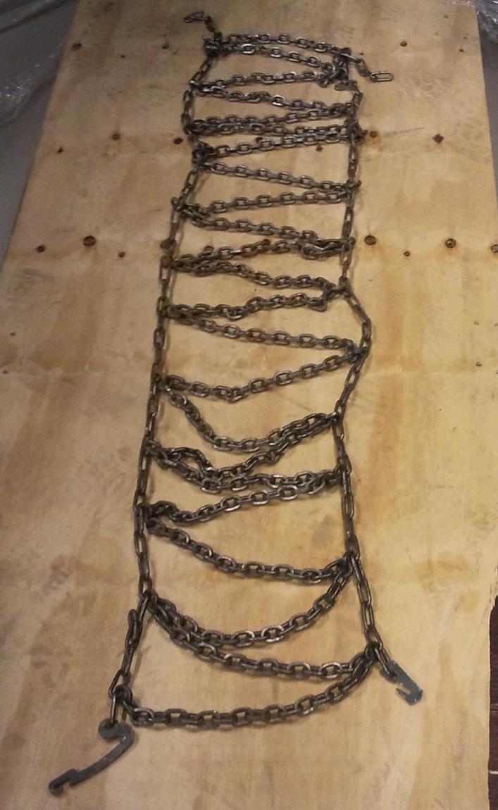 Elikkäs olisi ylimääräisenä 2 kpl kuvan mukaiset ketjut eli koko on noin 150x30 cm. ketjut on ehyvet ja lenkin paksuus on 5mm.