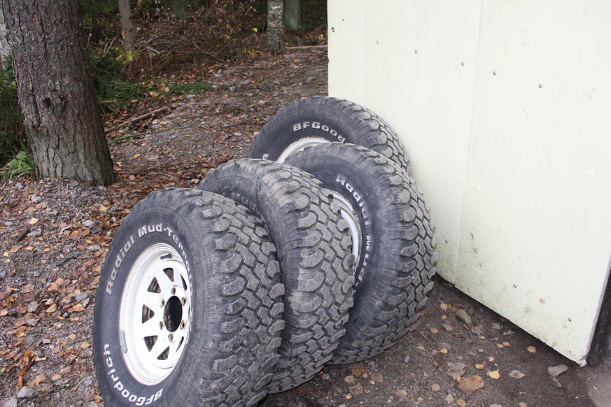 BF Goodrich Mudterrainit 31x10,50R15Myydään Myydään BF Goodrich Mudterrainit 31x10,50R15 renkaat vanteilla!Kulutuspintaa noin 4mm jäljellä. H. 400e Mukaan vielä muutamat lisävalot H. 50e Myydään Viimeksi muokannut samisami2 : 11.04.2012 11:39 Perustelu: otsikko ja etuliite |