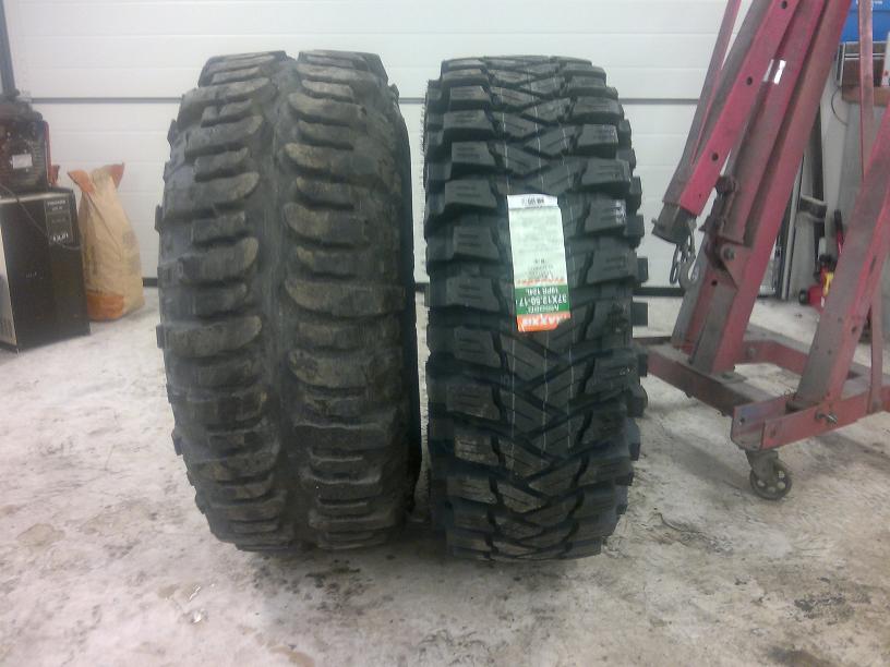Maxxis TrepadorTuli laitettua ensi kesäksi tuollaiset Maxxis Trepador 37x12,5-17 Competition mallit. Aika mukavan oloinen rengas. Poikkeaa hieman CreepyCrawlerista. Lähinnä kuvio on hieman v-mallinen ja kylkikuviointi on hieman agressiivisempi. Koeajolle en vielä pässyt kun Comanche on ilman konetta mutta eiköhän sitä toukokuun lopulla pääse jo cruisaileen. Ohessa muutama kuva jossa vertailu renkaana on 38,5x15-15 boggeri